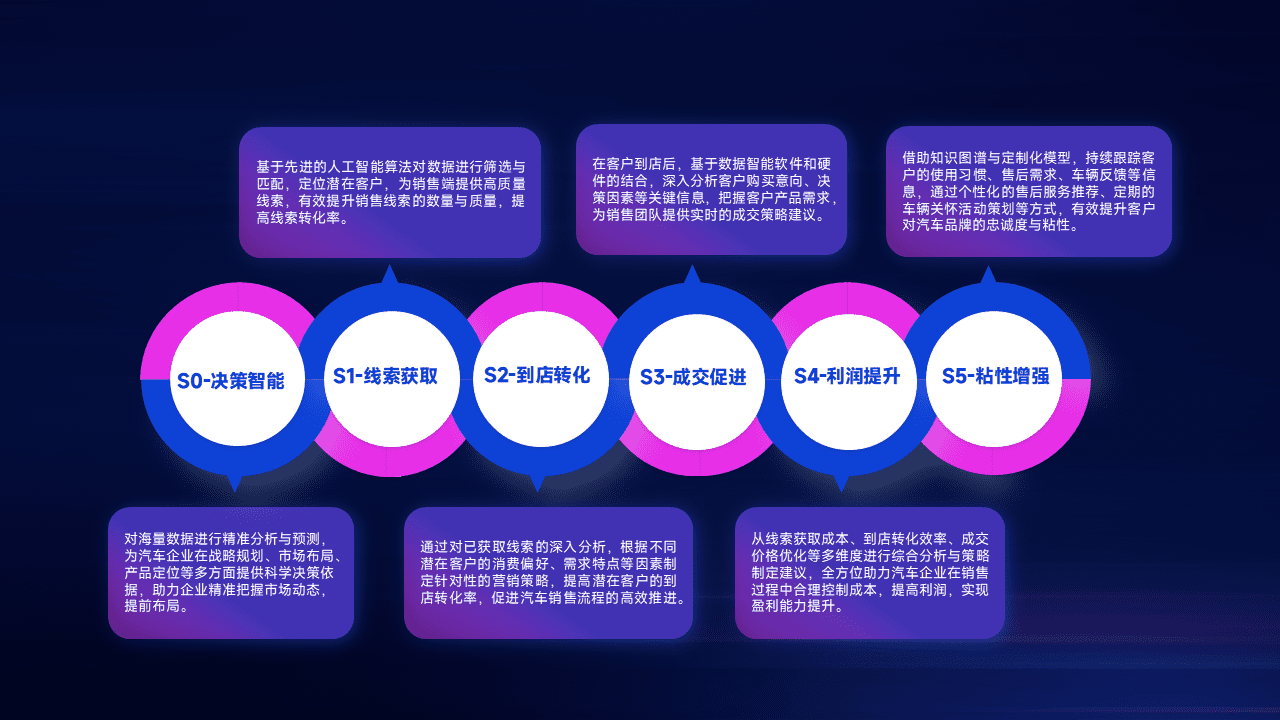 通过拓宽潜在客户来源、、、优化线索分配并提高到店转化率,,,以增强销售效率。。同时,,,,利用线索数据不断优化分析模型,,有效提升转化率,,扩大营销影响力。。。。
